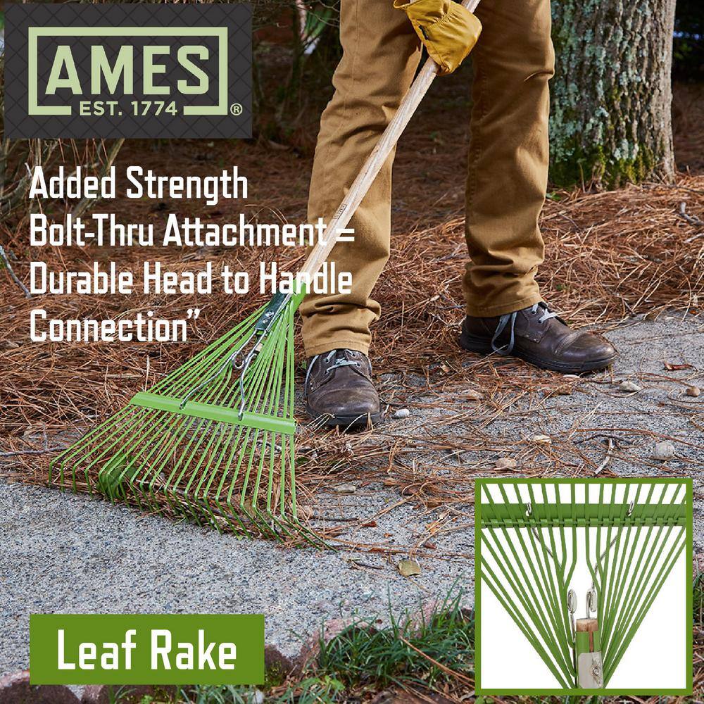 Leaf rake from Ames - for clearing leaves and debris dethatching lawns; features a 6 in. cushioned grip and a flexible coil spring for smooth raking action - assembly required
